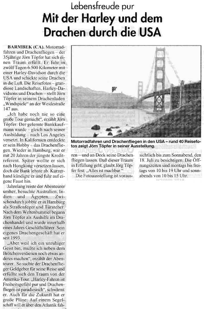 Tourbericht im Magazin "Hamburger Wochenblatt"