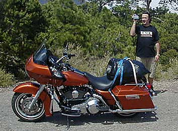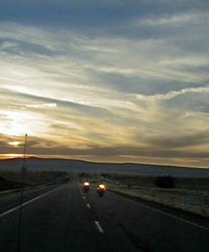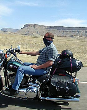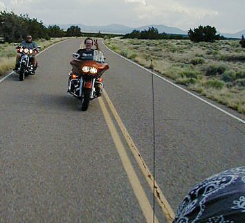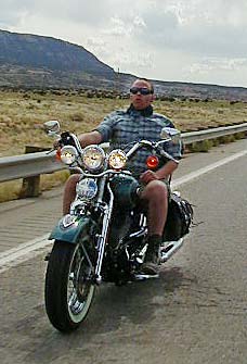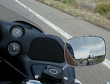Jens und Michael sticht in Utah der Hafer und beide meinen, mal ordentlich am Hahn drehen zu müssen. Ich natürlich langsam hinterher. Mit einem mal, die beiden sind schon ein ganzes Stück voraus, sehe ich im Spiegel einen Cop aus seinem Versteck kommen und vollaufgeblendet hinter mir herkommen. Ich rechts ran, er steigt aus und sagt: habt ihr es etwa eilig? Er hat Michael mit 95 miles,