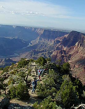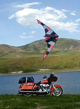Nachdem ich in L.A. meinen Topas und den Hot Stripe ausgiebig fliegen konnte, kam jetzt der Carat UL zum Einsatz. Leichteste Winde und der Blick auf die Felsenformationen in der Prärie sind kosmogigantisch. Ich liebe Harley und Space Kites.