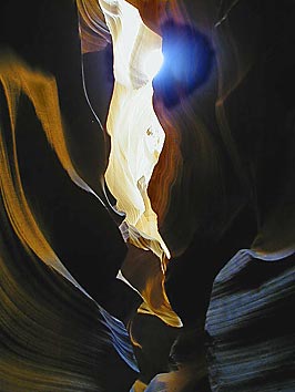 Wir sind von Page zum Antelope Canyon gefahren. Ein Canyon, der als Heiligtum der Navajo Indianer gilt und durch Wind und Wassererosion sehr enge verwickelte Gassen hinterlassen hat, die sich korkenziehertechnisch nach oben winden.