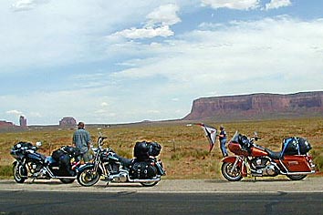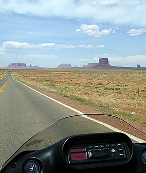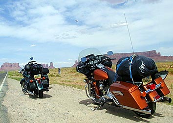 Dann wurden erst mal die Helme, die Nierengurte, die Jacken weggeschmissen und wir sind naked durch Arizona gefahren, nur die 45 Grad um uns, der heiße Präriewind und der Blick auf Monument Valley.