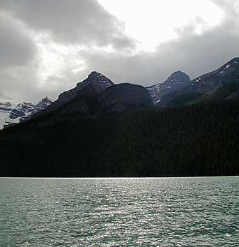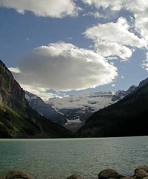 Dann weiter entlang der Rockies zum Lake Louise, Nähe Banff, ein See der durch einen Gletscher gespeist wird und ein atemberaubendes Panorama abgibt.