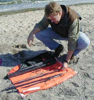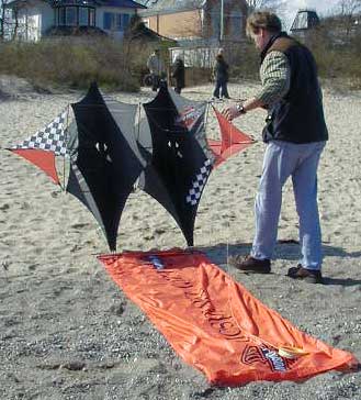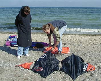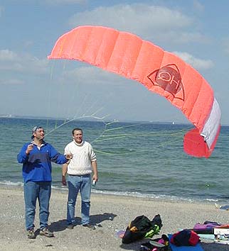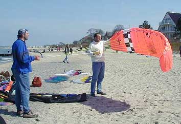 ![]() Und dann kam die Premiere. Der diesjährige Tourdrachen für die Kite & Bike Dreamtour wurde erstmalig getestet. Da er für eine Motorradtour gedacht ist, hat Sören beim Bau auf ein kleines Packmaß geachtet. |