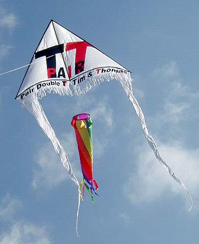 ![]() So macht es Spaß. Oben der Delta und unten am Strand die TrickTails im Pairflug. Das Foto vom TrickTail Pair gibt es, wenn mal jemand anderes fotografiert :-)) |
