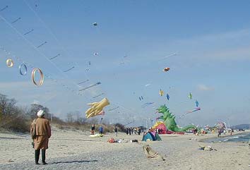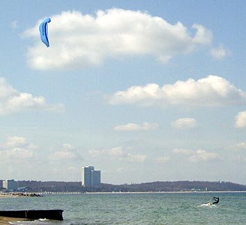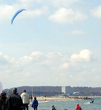 ![]() Die Vorführung zum Trendsport Kitesurfen fand natürlich viel Anklang. |