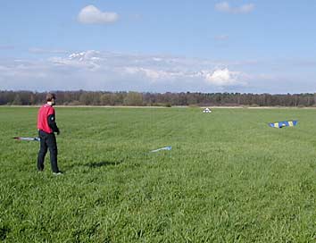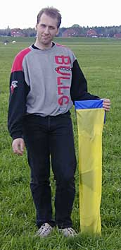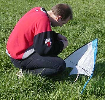![]() Den selbstgebauten Drachen das erste Mal auf dem Flugfeld zu testen ist immer was Besonderes. |