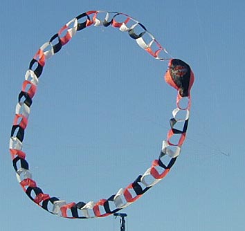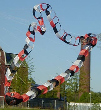 ![]() Die Schlange bietet ständige Abwechslung, da sie sich in immer wieder neuen Formen an den Leinen windet. |