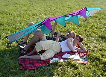 Ein Teil des Windspiele-Teams traf sich am Samstag mal wieder zum gemeinsamen Drachenfliegern mit einigen Kitern und deren Familien. Die meiste Zeit hatten wir zwar eine mörderische Flaute, doch ab und zu konnten wir ein bisschen an unseren Drachen zupfen. Und das gemeinsame Picknick war schließlich auch ganz nett...:-))