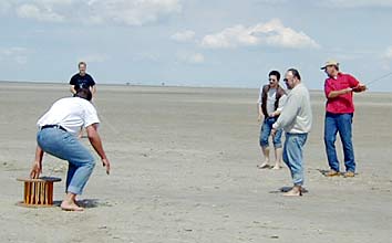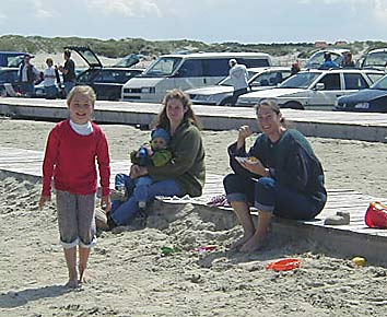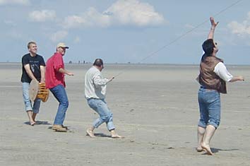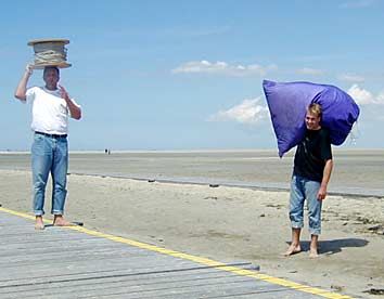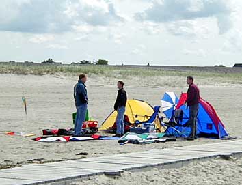 ![]() ZU Beginn wurden wir erstmal mit Flaute begrüßt. Aber wozu gibt es Frisbees und Volleybälle. Hier Natascha und Søren in Aktion... |