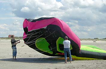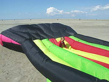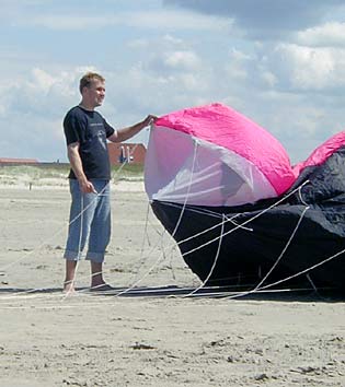 ![]() Wir hatten uns den Spaß gemacht und ihm einen 300er NasaWing mit gut 7qm Segelfläche verpasst. |