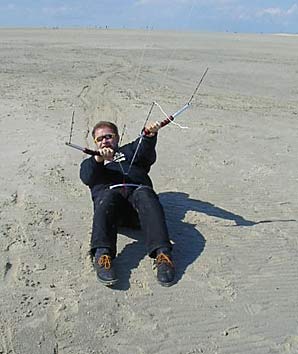 ![]() Mit dem kräftigen Wind am Nachmittag konnte ich es mir natürlich nicht nehmen lassen ein wenig Sandgliding zu machen :-)) |