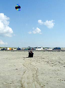 ![]() Ein NasaWing am Himmel und viele Spuren im Sand, das heißt Spaß pur. |