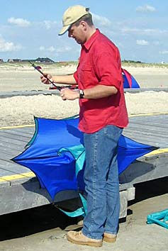 ![]() Am späten Nachmittag frischte der Wind so stark auf, das der Octopus wieder eingeholt werden mußte. |