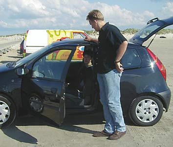 ![]() Søren und Manja bei der Abfahrt im Batmobil... |